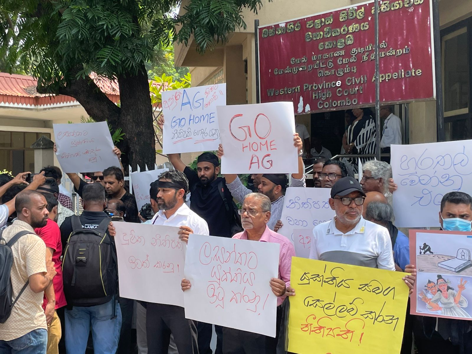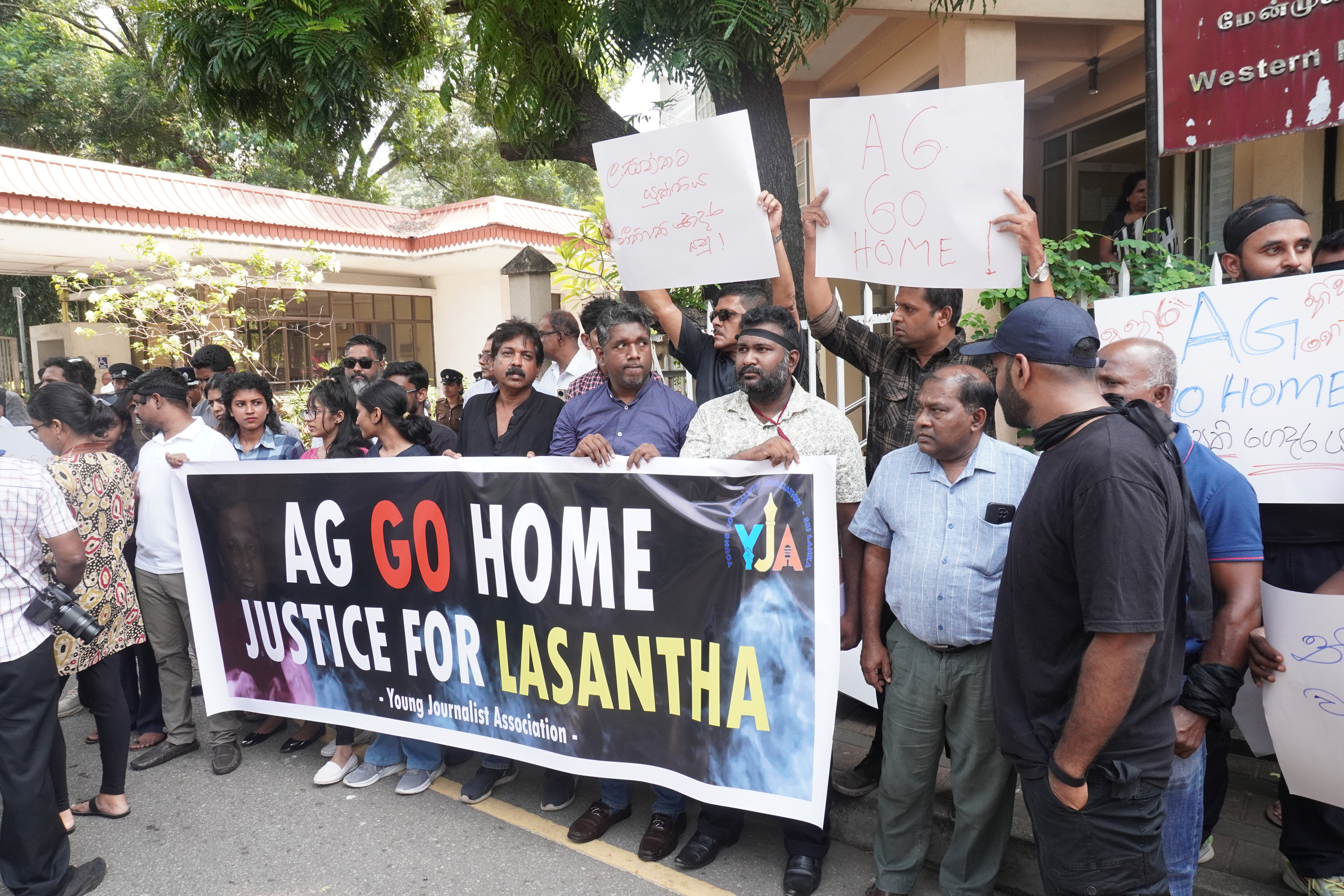 කොළඹ නීතිපති දෙපාර්තුමේන්තුව අසළ පැවති විරෝධතාව සංවිධානය කරන ලද්දේ තරුණ ජනමාධ්යවේදීන්ගේ සංගමය විසිනි.